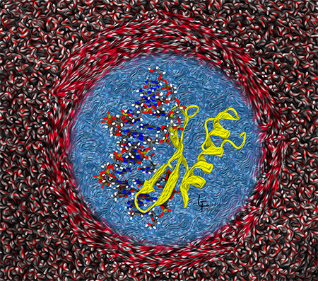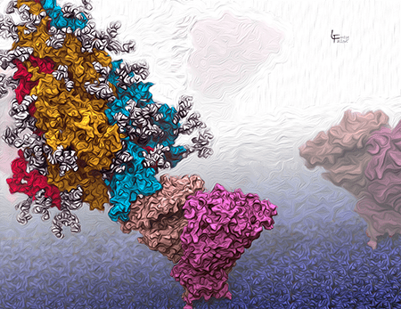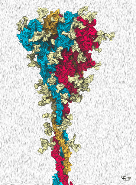 To help develop antiviral drugs, Graduate Student Lucy Fallon in Carlos Simmerling’s lab is studying how the SARS-CoV-2 Spike protein binds with the host cell’s receptor, and models how different molecules might interfere with this interaction. She is also a gifted molecular-graphics artist. Here are some of her images that illustrate her project, and some other proteins as well.
